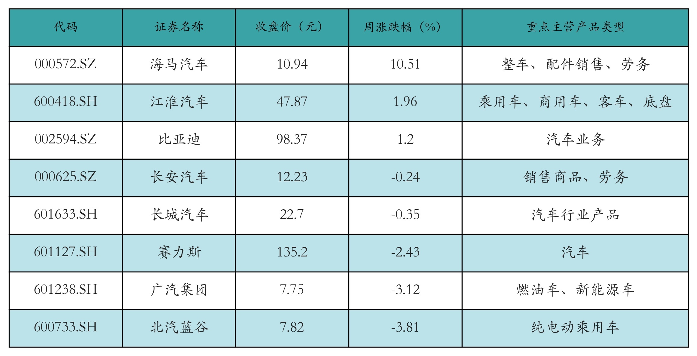 1.新能源汽车相关板块一周行情梳理