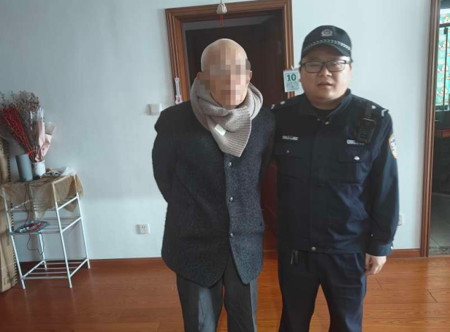 这位老人家头戴鸭舌帽,一副金丝眼镜,一身毛毡大衣,还有厚厚的围巾保暖,有点《繁花》里“爷叔”的腔调。老人家看到派出所来人,也有点难为情。