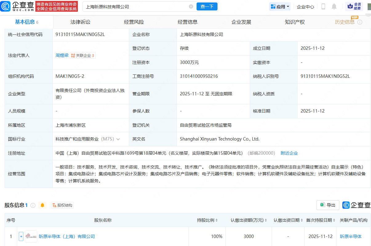 正规配资平台推荐 昕原半导体新设科技公司,含集成电路芯片业务 正规配资平台推荐 来源:元鼎证券配资平台 网站:元鼎证券_元鼎证券开户_正规股票配资 日期:2025-11-17 06:53:58 查看:77