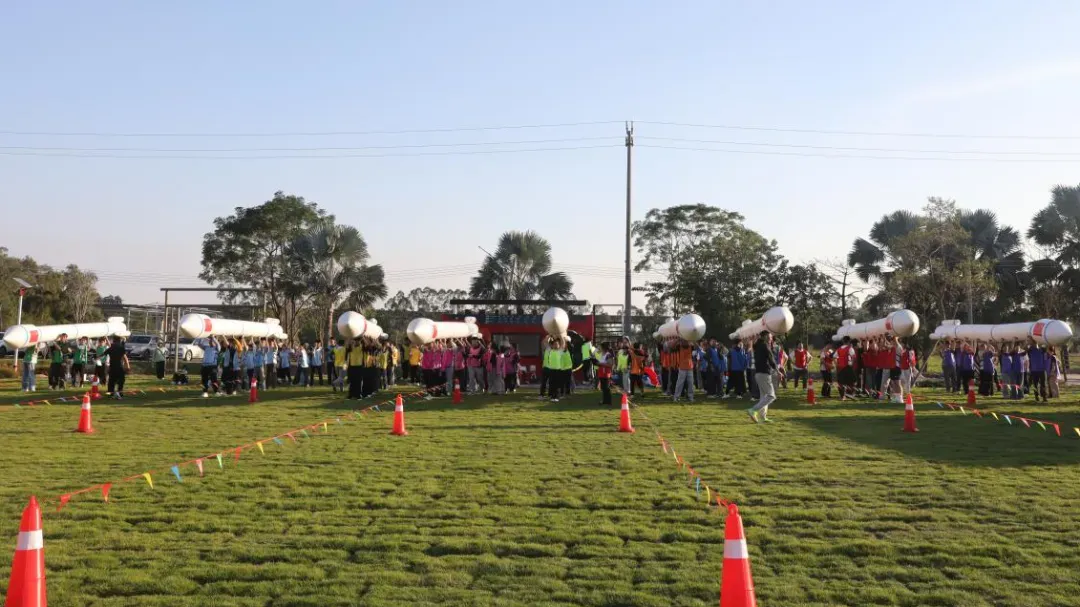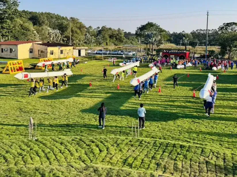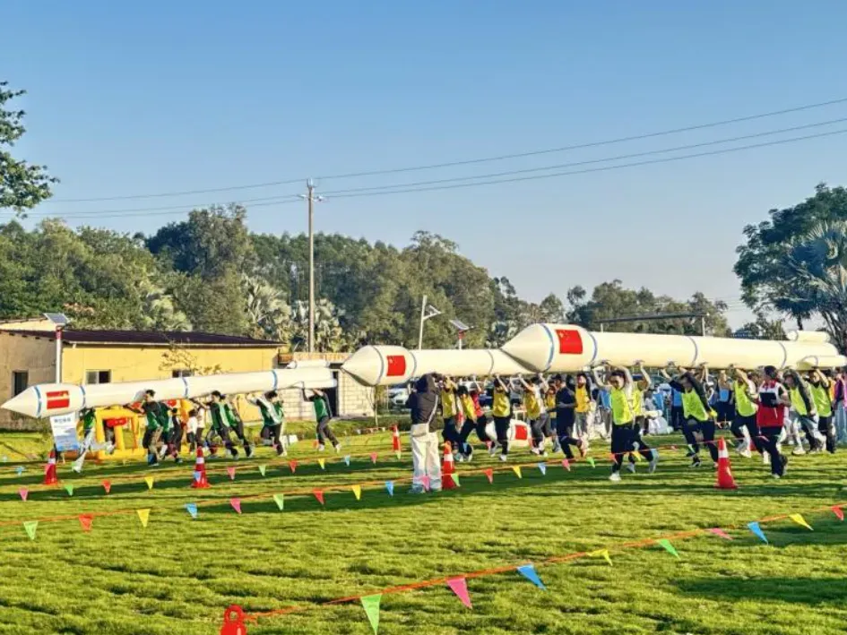 “直上云霄”项目将活动气氛推向高潮,裁判发令后,全队步调一致地护送“火箭”向前冲锋。