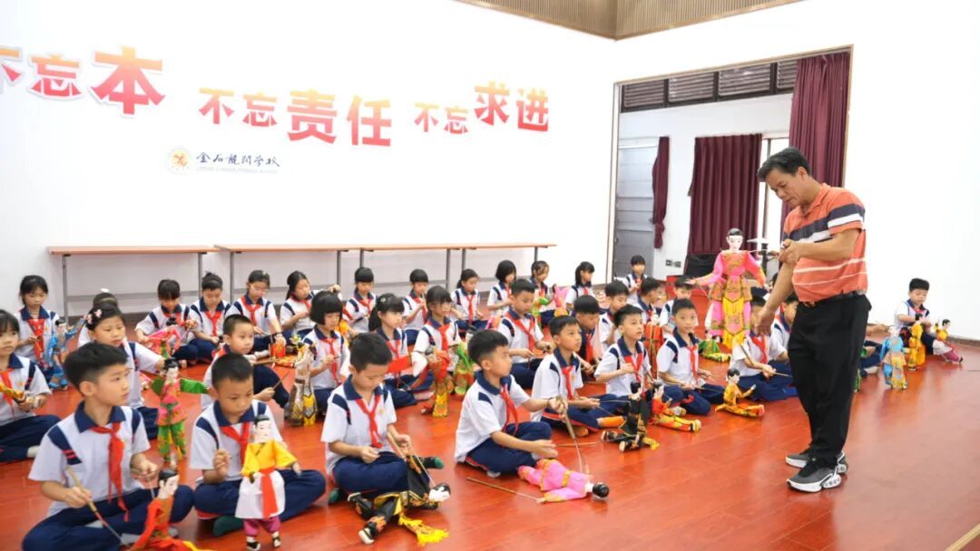 每逢周一、三、五的课后服务时间,在金石镇龙阁小学礼堂内总能看到不少学生在勤学苦练铁枝木偶戏。据了解,龙阁小学早在2014年就成立了潮州铁枝木偶戏实践工作坊,在省、市、区各级比赛中成绩斐然,学校也因此被评为“广东省艺术教育特色学校”“首批广东省中华优秀传统文化传承学校”。这生动的文化传承图景,离不开蓉子女士的鼎力支持。
