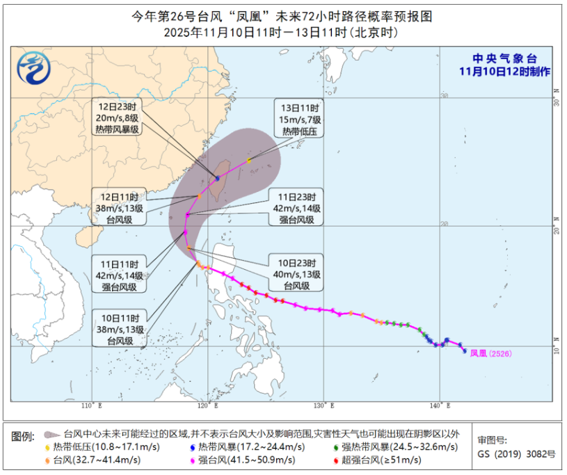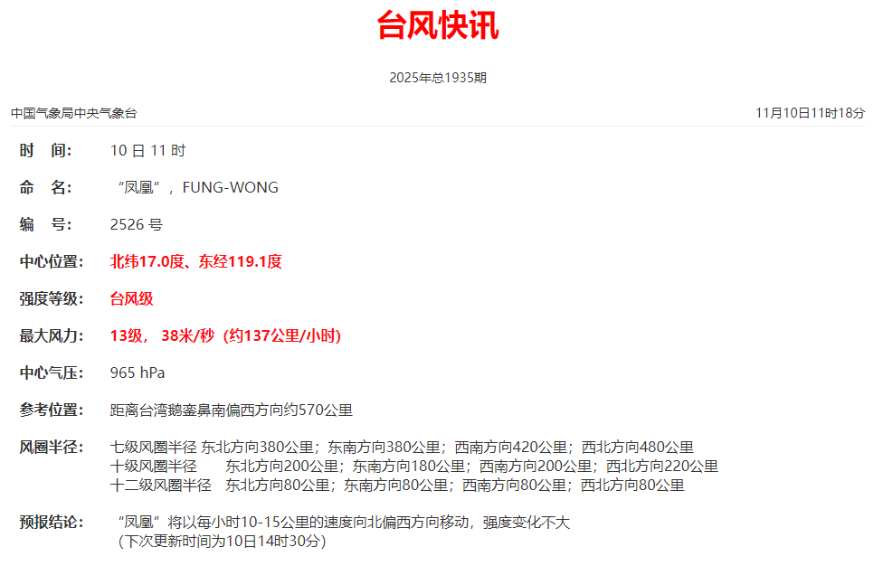 今天,闽中、闽南和台湾浅滩渔场及中南部沿海海区最大风力逐渐增强至9~10级、阵风11~12级,闽东渔场中西部和北部沿海海区8~9级、阵风10~11级;沿海地区部分县市有8~11级阵风。